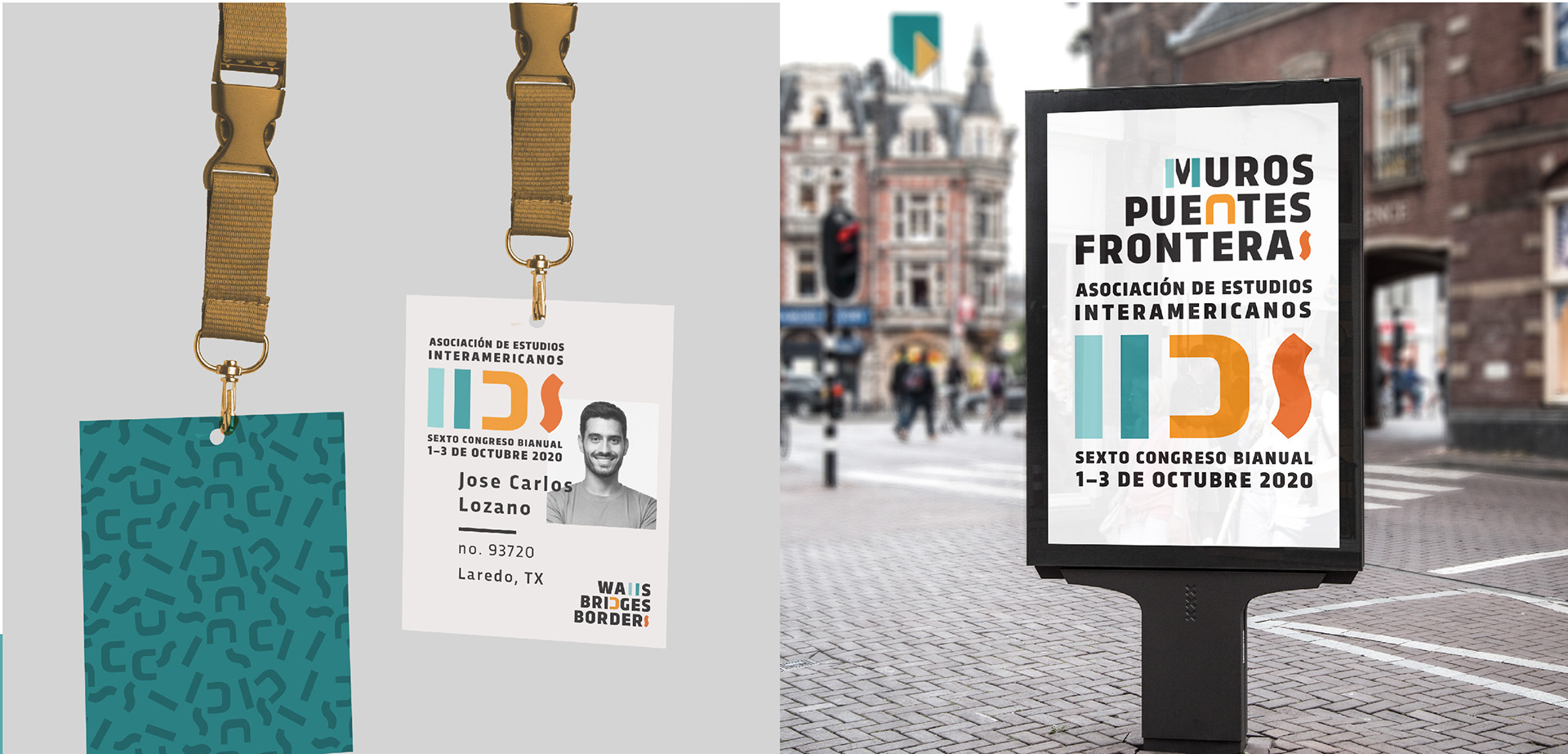 The design is an interpretation of icons that represent a wall, bridge, and a border. A challenge in creating this typographic brand was that it should also adapt to Spanish-bilingual terminology and letterform: Muros, Puentes,Fronteras: Asociación de Estudios Interamericanos. The result is a marriage between iconic signs and symbolic signs. The color scheme is an adaptation of water and land since they are the primary resources of the environment that play a role in migration, an important topic to the conference
